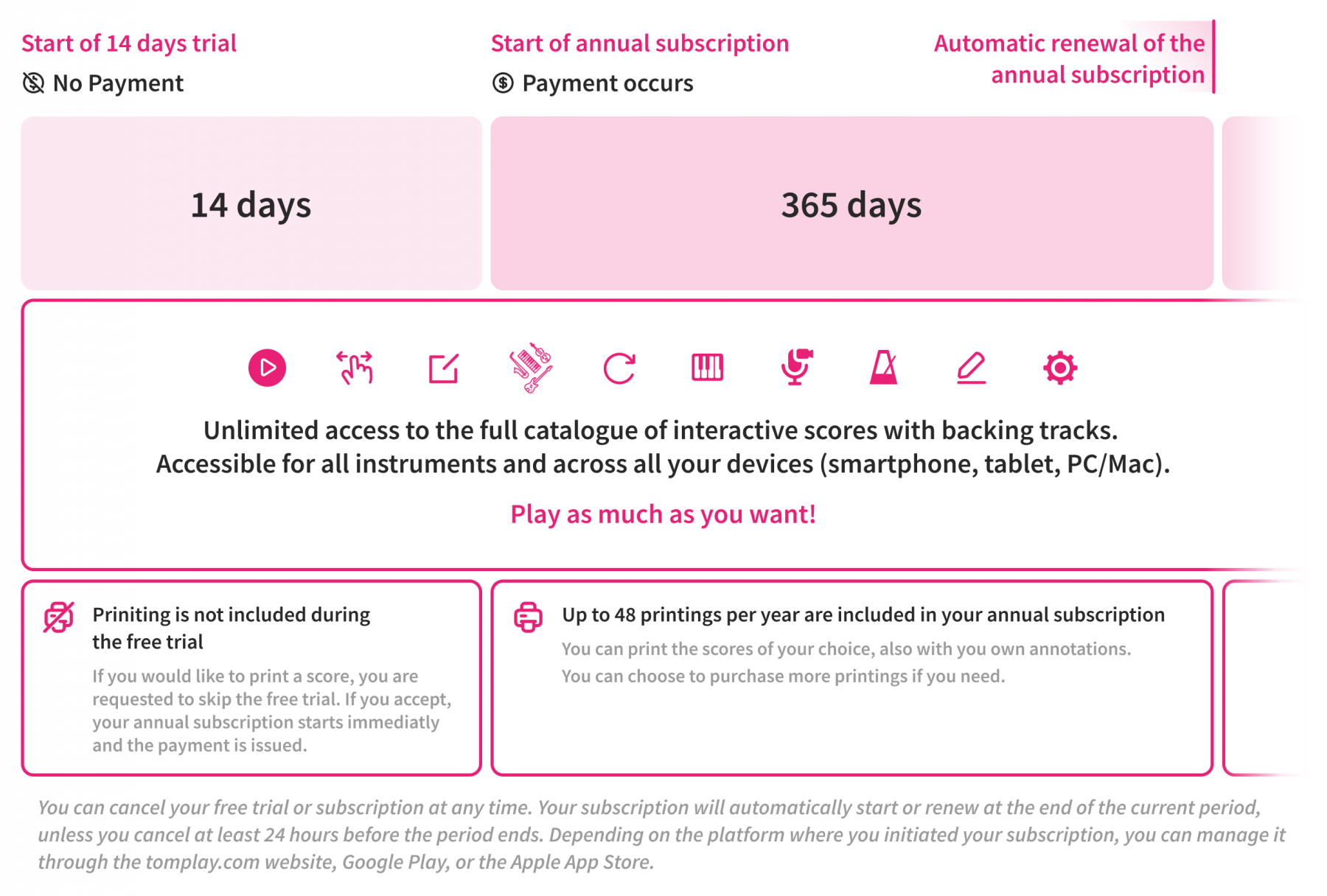 - Unlimited access to our entire catalogue (all instruments except music theory)